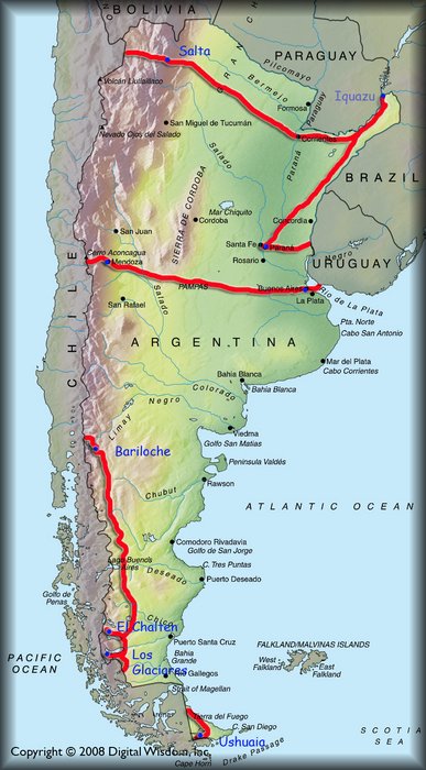 Nie ma jednak co rozpaczać, gdyż argentyńskie autobusy są dla mnie najlepszym publicznym środkiem transportu, jakim kiedykolwiek w życiu miałem przyjemność podróżować. Cama coche, czyli autokar z łóżkami w dolnej części autobusu, a na piętrze znajdują się bardzo wygodne ogromne fotele. Są na tyle szerokie, że w jednym rzędzie na szerokość autobusu mieszczą się tylko trzy takie siedzenia. Miejsca na nogi też nie brakuje, a specjalna podstawka na podudzia i stopy powoduje, że nogi należycie wypoczywają. Oczywiście klimatyzacja, toaleta, koc, poduszka, video i słuchawki również należą do podstawowego wyposażenia. Jakby tego było mało, to po korytarzu szaleje stewardesa z wózkiem serwując ciepły posiłek z napojami (wliczając wino lub szampana). Na śniadanko kierowca zwykle zatrzymuje się w przydrożnej restauracyjce, gdzie czeka już na nas zastawiony stół. Po takiej nocy budzimy się zupełnie wypoczęci. Za nieco mniejsze pieniądze dostaniemy bilet w semi-cama coche, gdzie warunki nieco ustępują wyżej opisanemu, lecz nadal podróż będzie niezmiernie wygodna. Nie zdziwmy się także jak nas nie wpuszczą do prawie pustego autobusu, gdyż na niektórych trasach obowiązuje zasada rozdzielenia biletów, tak aby pozostali pasażerowie na dalszych przystankach też mogli wejść na trasie. Jest na to sposób jeśli się nam śpieszy - należy kupić bilet jak najdalej się da, a po przyjechaniu do tej miejscowości, jeśli nie ma nowych podróżnych, kupić następny bilet, czasami nawet na ten sam autobus.